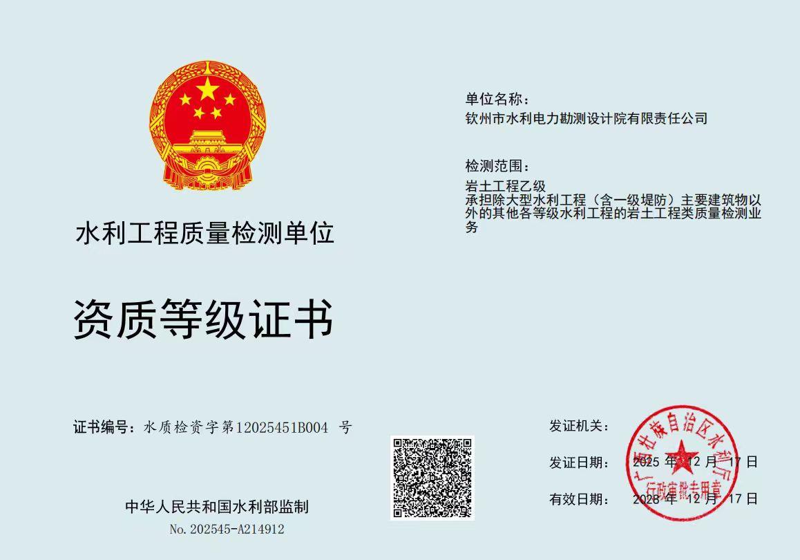 水利工程质量检测单位资质等级证书(岩土工程乙级)